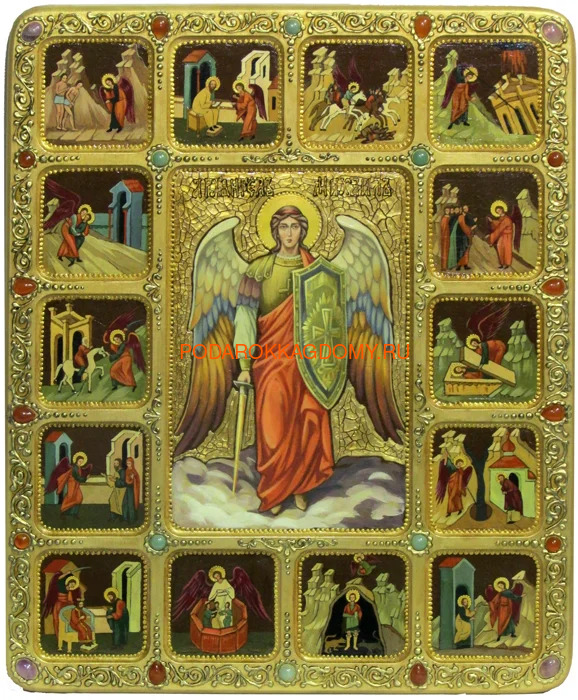Живописная икона Архангел Михаил с житийными сценами 071210