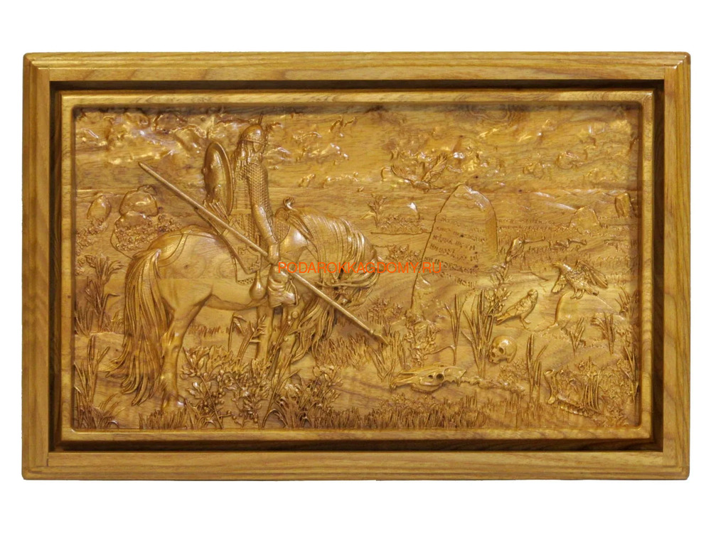 Лицевую панель украшает трехмерная репродукция прекрасной картины русского живописца "Витязь на рапутье".
