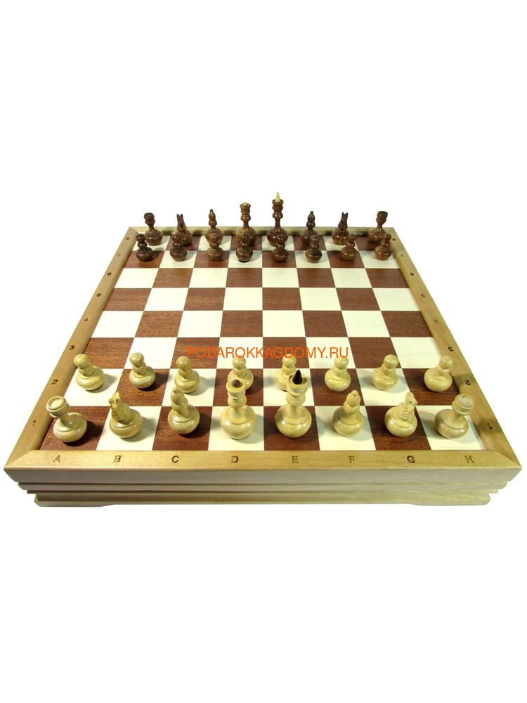 - Внутри доски есть отделения для каждой фигуры. Решётка выполнена из массива берёзы, в результате чего фигуры не деформируются.