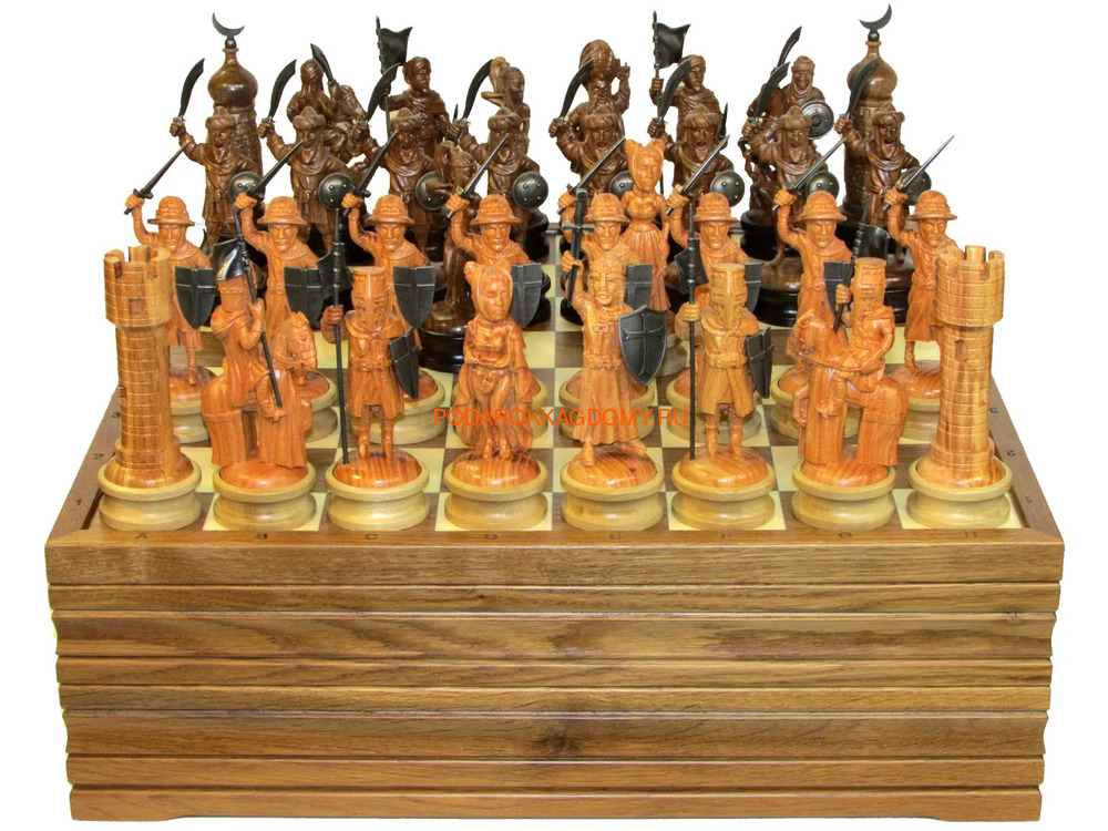 Деревянные резные шахматы "Крестоносцы - Сарацины"