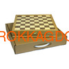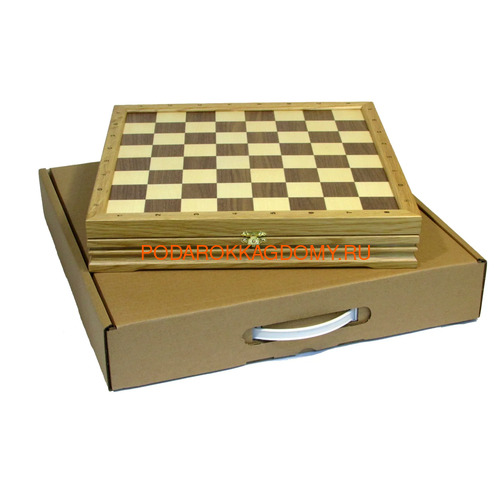 - Игровое поле сформировано на основе 4 мм березовой фанеры и набрано вручную из попеременно расположенных квадратиков шпона американского ореха и клёна.