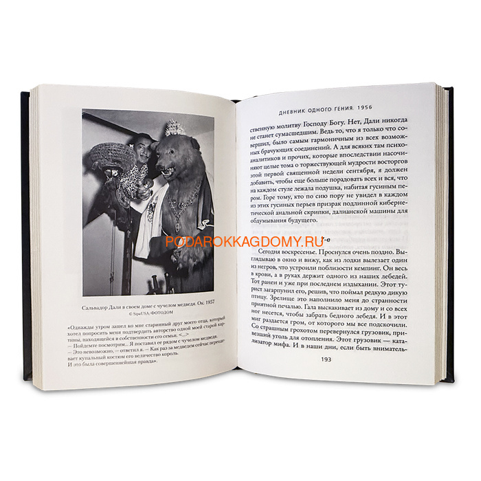 Подарочная книга в кожаном переплёте "Сальвадор Дали. Дневник одного гения" (0633) это своеобразные мемуары написанные художником в период с 1952 по 1963 год. Повествуя о своей повседневной жизни, он захватывает врасплох своих биографов и перебегает дорогу комментаторам. В издание включена обновлённая вклейка с чёрно-белыми фотографиями.