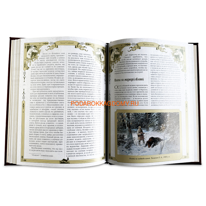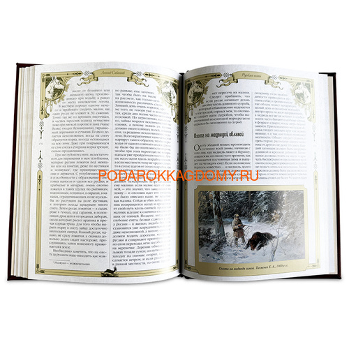 Подарочная книга в кожаном переплёте "Русская охота. Сабанеев Л. П." (06218) это богато иллюстрированное издание, автором которого является Леонид Павлович, наиболее известный отечественный охотник, рыболов, зоолог, кинолог, а также редактор авторитетных журналов. В произведении подробно изложены способы и правила добычи диких зверей и птиц, а также их особенности поведения в разные времена года.